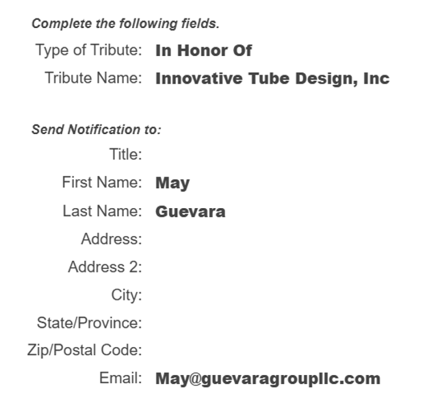 This donation is made in tribute to our very first client, Innovative Tube Design (ITD). The owners of ITD are passionate dog lovers, with two cherished companions—Mako and Woody. To honor their love for their dogs and their care for animal welfare, we chose to support an organization that shares that same mission of compassion.